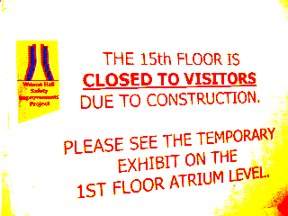 The answer is vague, "Perhaps it has to do with the construction taking place on the fifteenth floor." We ponder, and we remain silent. Possibly, the Earth itself has been halted, an engineering neccessity for mysterious construction taking place on the fifteenth floor, because, after all, this is Fermi National Accelerator Laboratory. High physics in exhaltion, Time and Motion are only relative. |