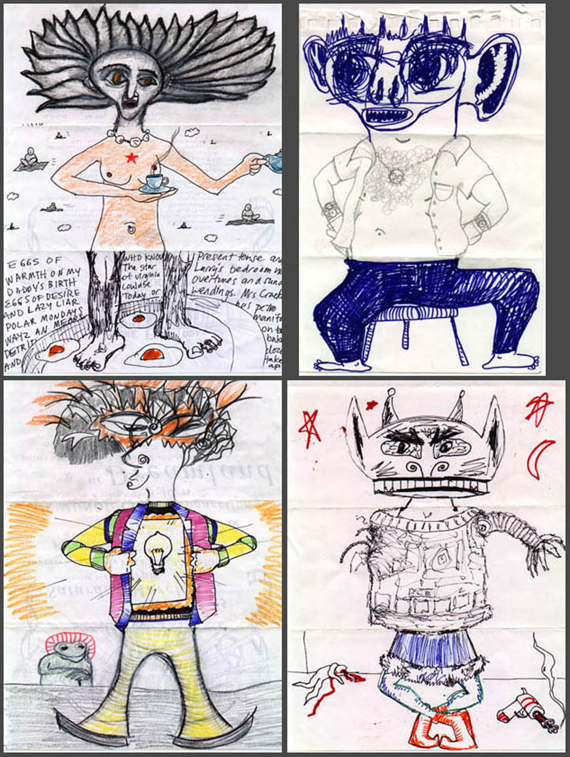 exhibition of drawings made by playing the classic dada drawing game exquisite corpse
