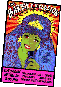 Barbie Explosion film and event by SoundChaser live musical accompaniment by Geoff, Kyle, Jason and Naia at the Dreamland Theatre 20 april 2002