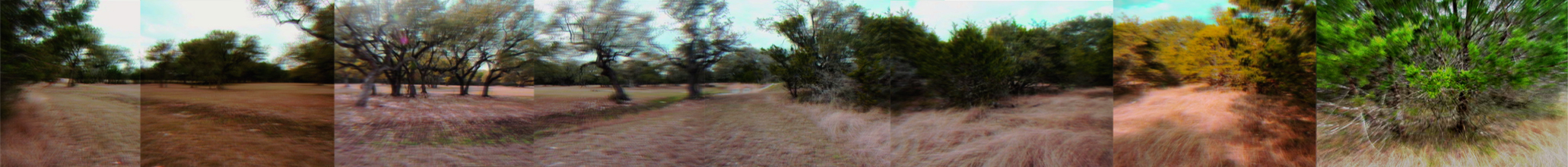 Revealed in these vistas, clouds and weather spread through the sky, winds shake plants, humans and animals dart almost imperceptibly.
