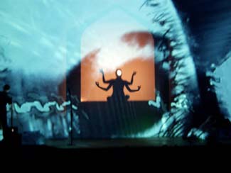 The Nine Questions Collective casts a spell upon the theater, opening a portal to the dreamland, weaving an epic in sound, video, shadows and movement.